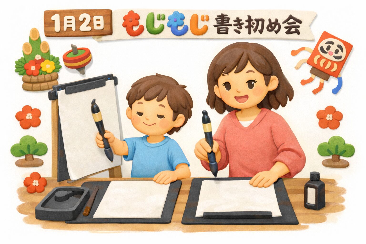 そんな声を聞きながら、親子で並んで筆を持つ姿がとても印象的でした。